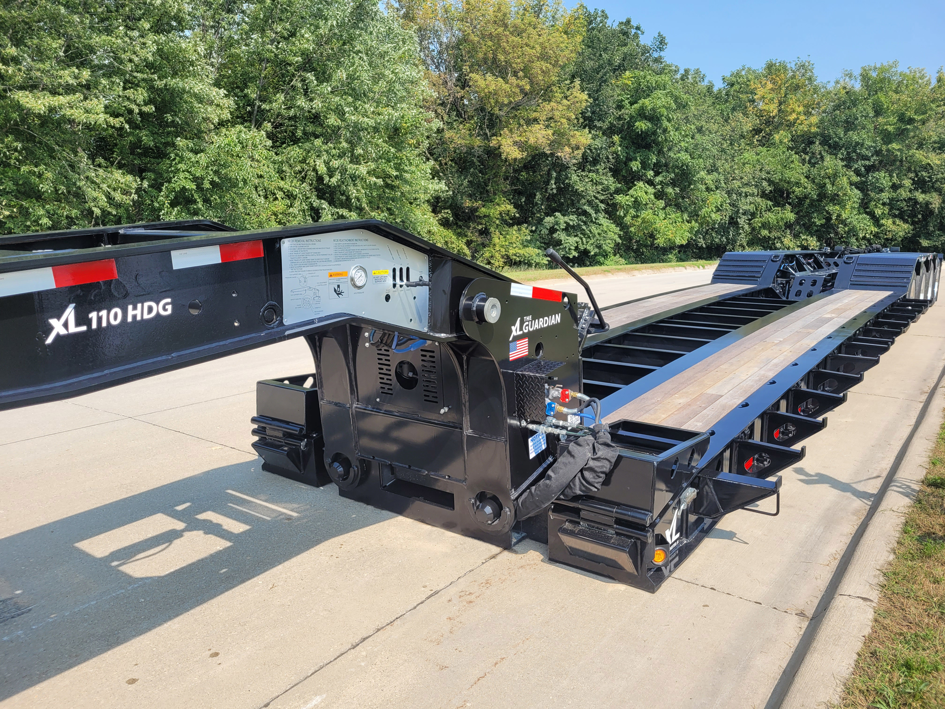 Hydraulic tilt design ensures smooth, safe operations. Rent sliding axle landoll trailers for easy loading of heavy equipment.