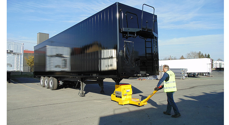 VMove XXL trailermover moving a semitrailer by hand into a tight spot
