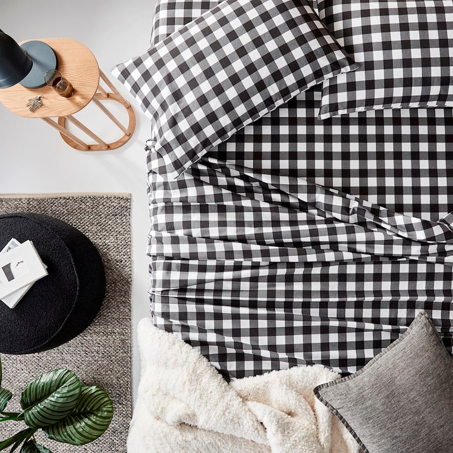 Printed Gingham Charcoal Flannelette Sheet Separates Adairs